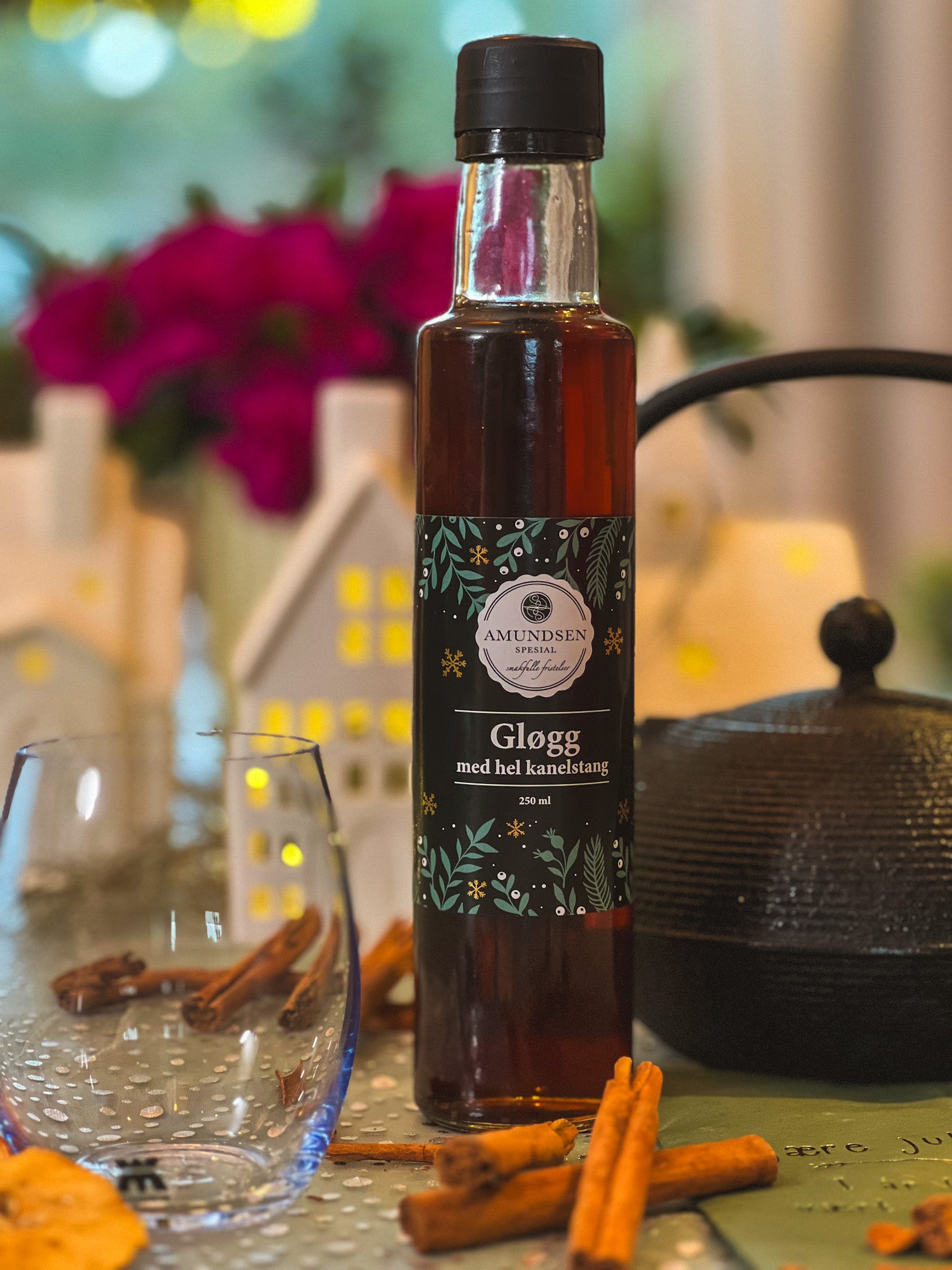 Amundsen Gløgg – Konsentrert gløggsirup En klassisk gløggsirup som gjør det enkelt å lage din egen varme juledrikk hjemme. Bland 1 del sirup med 8 deler tørr rødvin og varm forsiktig opp – ikke kok. Ønsker du et alkoholfritt alternativ? Sirupen smaker også nydelig med tørr eplecider, eplejuice eller ingefærøl. Tips: Topp med hakkede mandler og rosiner for ekte julefølelse. Gir ca. 2,25 liter ferdig gløgg. Perfekt for: Julekosen med venner og familie Et smakfullt innslag på julemarked eller gavebord En varmende velkomstdrink i vinterkulda